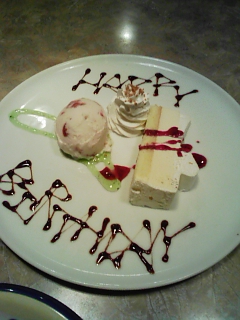で、友人の誕生日も近かったってことで、サービスでケーキもらいました(ファミレスですが、そこの会員なので) くう、そのハッピーバースデーはLのものだぜ。友人も了承してくれたv